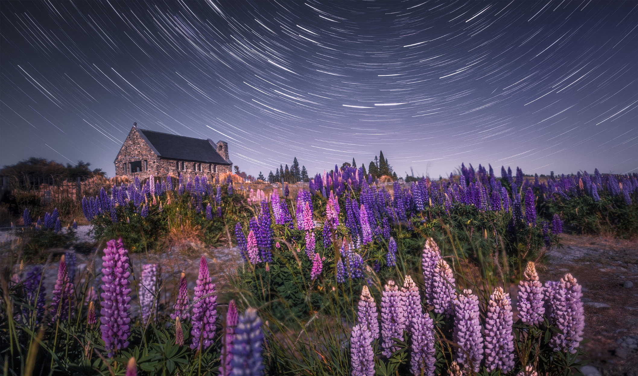 Celestial Dance over Lupin Fields by Lucy Yunxi.